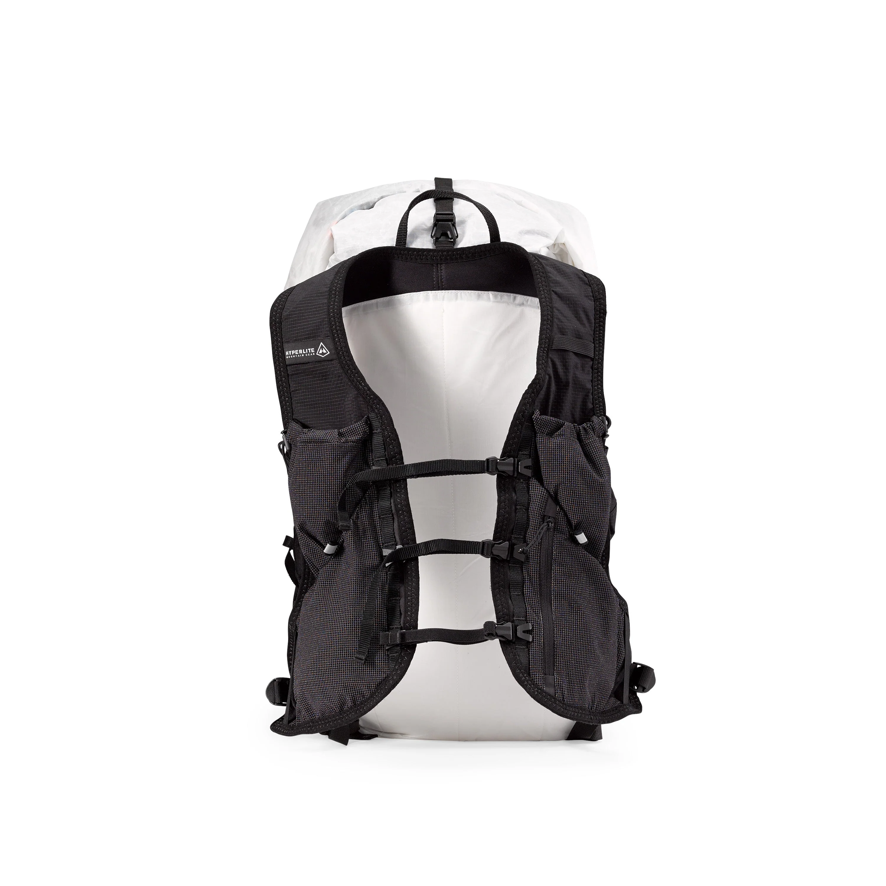 - The roll-top pack closure with a single top compression strap ensures secure packing and easy volume adjustments.